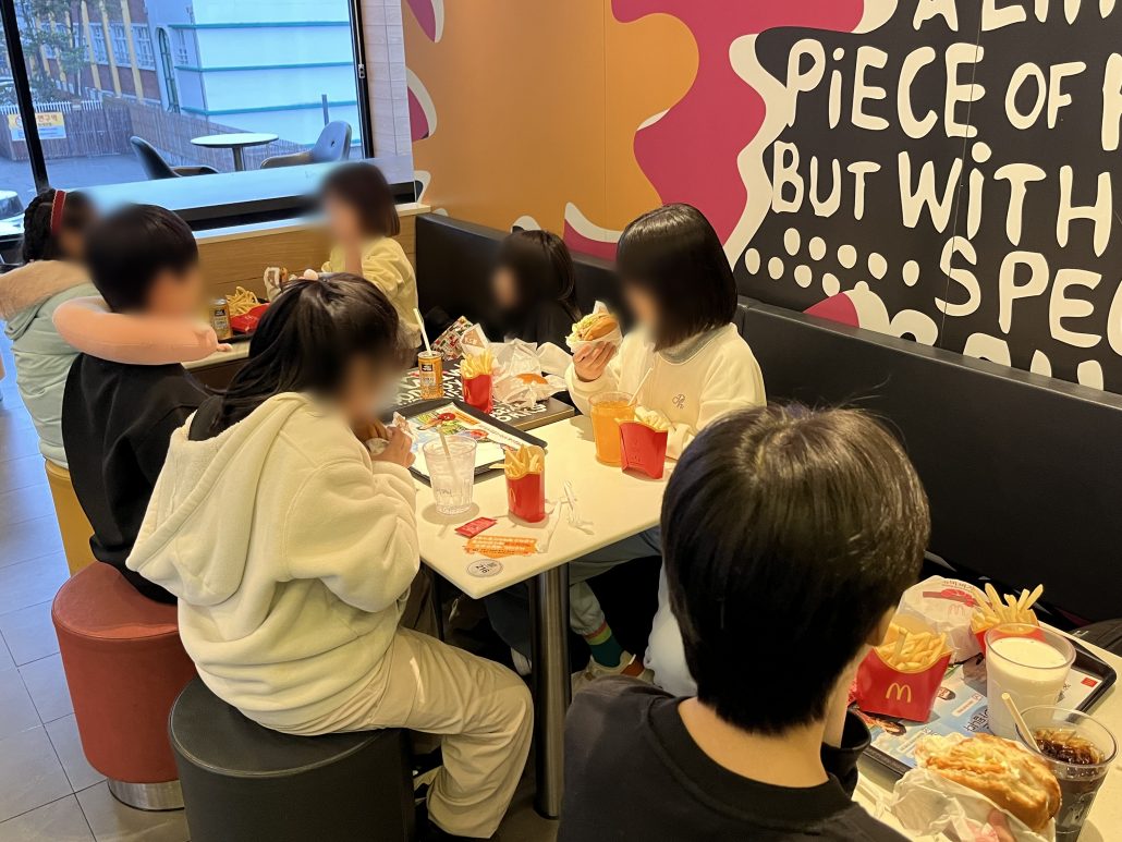 모두 함께 맛있는 햄버거를 먹으며 따뜻하고 즐거운 시간을 보냈습니다.
