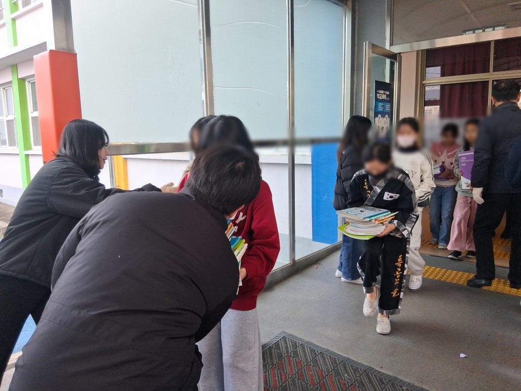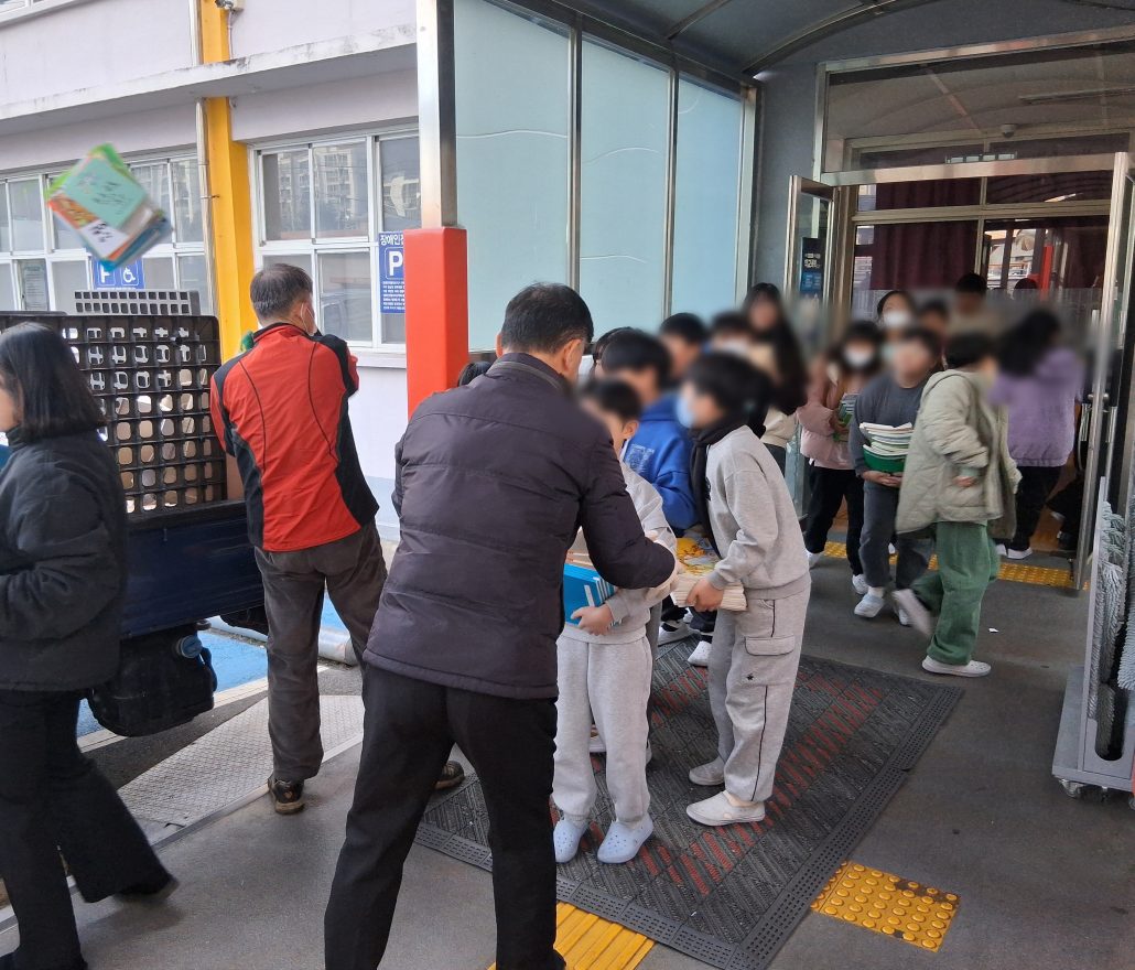 지난 12월 30일, 덕산초등학교 교정은 평소보다 더 분주하고 활기가 넘쳤습니다. 이른 시간부터 책을 한아름 품에 안은 학생들의 발걸음이 이어졌는데요. 그 이유는 바로 모두가 기다려 온 ‘사랑의 교과서 나눔’ 활동이 진행되는 날이었기 때문입니다.