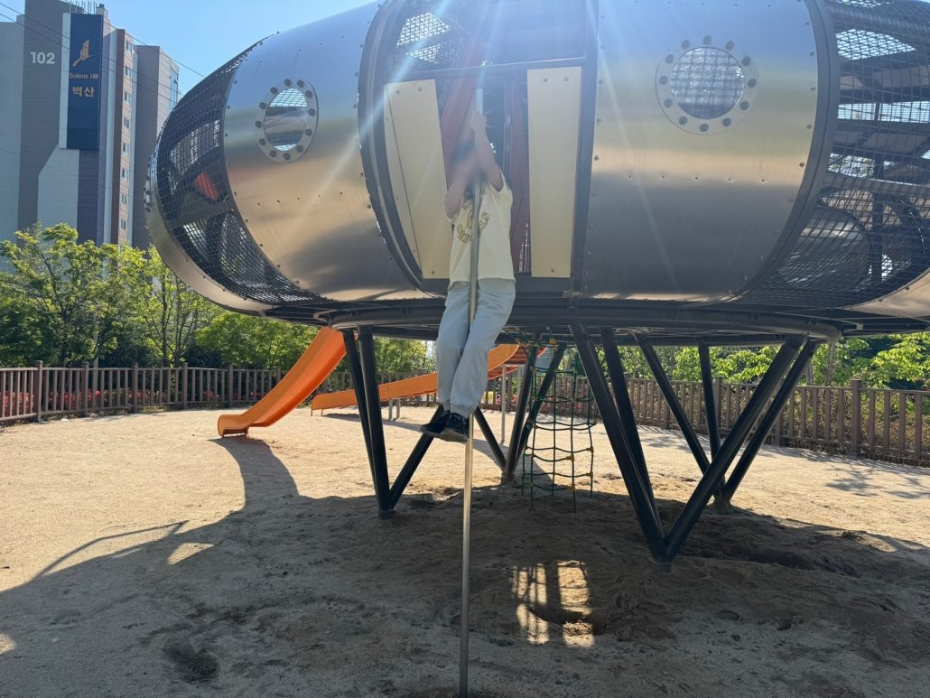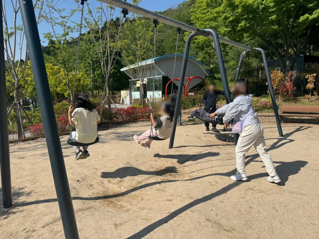 이 날 행사에는 애솔방과후교실에 다니는 초등학생 9명이 참여하였습니다. 아동들은 진해 광석골 쉼터에 있는 우주최고봉 놀이터에서 놀이기구를 타고 얼음땡, 술래잡기 등 다양한 놀이를 즐겼습니다.
