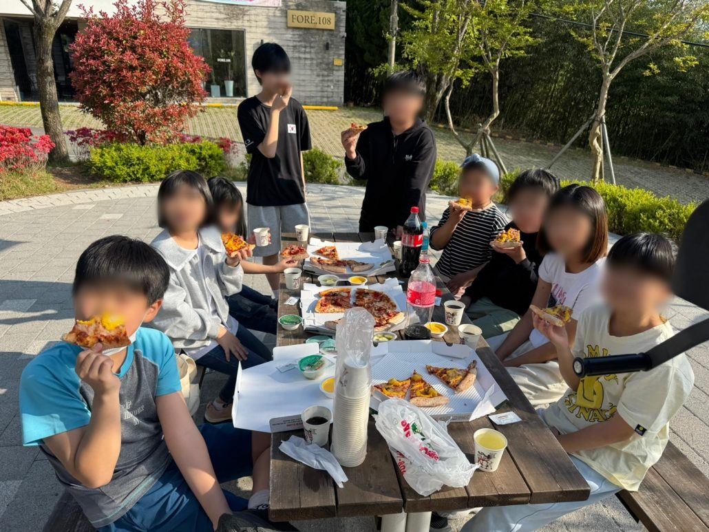 따뜻한 햇살 아래에서 아이들은 마음껏 뛰어 놀고 함께 웃으며 평소 안고 있던 스트레스를 훌훌 털어버렸고, 간식으로 피자를 먹으며 소소한 대화를 나누었습니다.