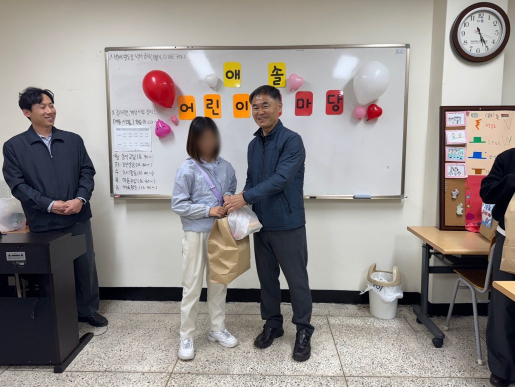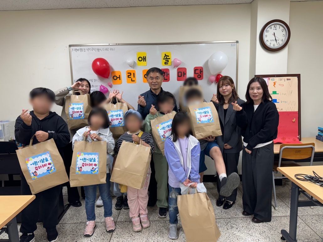 복지관으로 돌아와 선물 전달식을 진행하였습니다. 관장님의 어린이날 축사와 함께 아이들은 어린이날의 의미를 마음 속에 되새기며 더욱 뜻 깊은 하루를 보냈습니다.