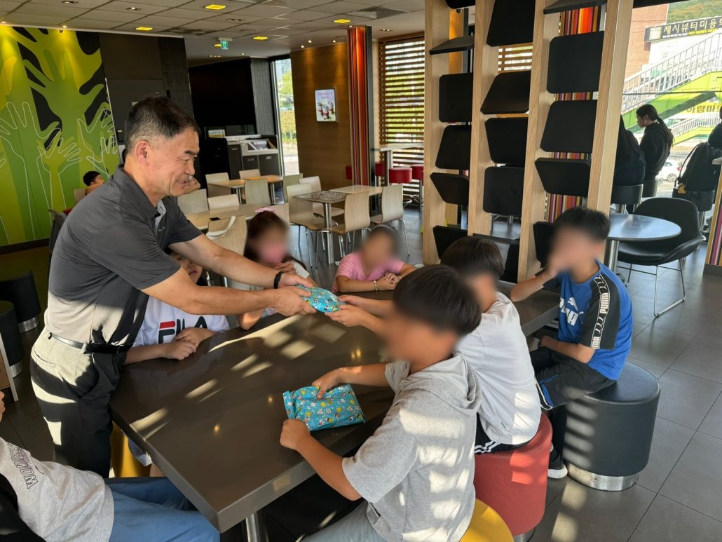 생일음식은 한국유흥음식업협회 창원특례시지회 진해중부업주모임에서 마련해주신 후원금으로 아이들이 좋아하는 햄버거 세트와 케이크를 제공하였습니다.